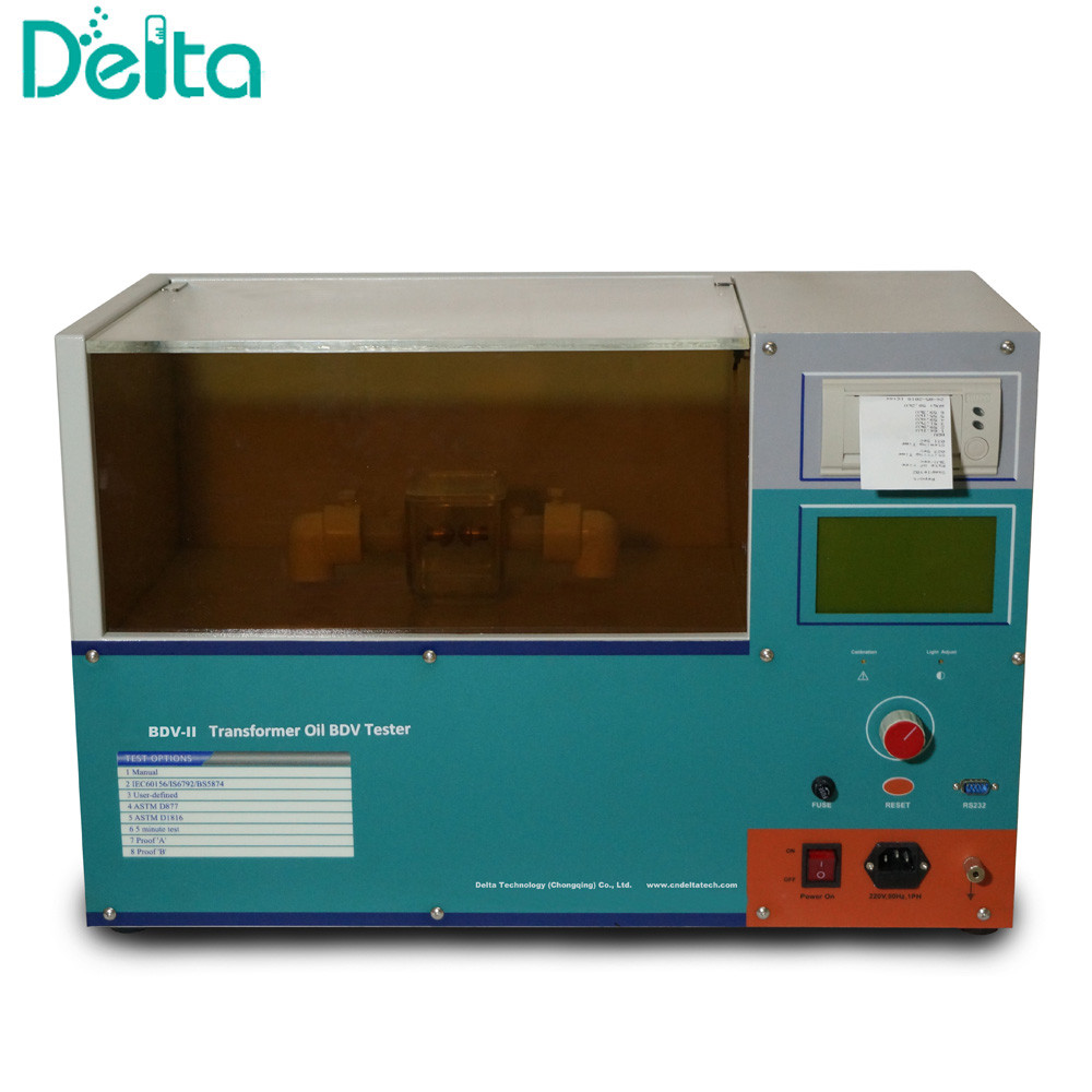 - BDV-II ASTM D877 IEC156 ट्रांसफार्मर तेल परीक्षण किटइसमें बड़ा एलसीडी डिस्प्ले, माइक्रो प्रिंटर है और इसमें 100 समूहों के डेटा को स्टोर किया जा सकता है।