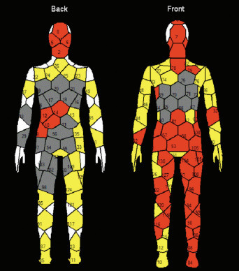 - मानकीन की सतह पर द्वितीय श्रेणी के जलने के क्षेत्र का विश्लेषण;